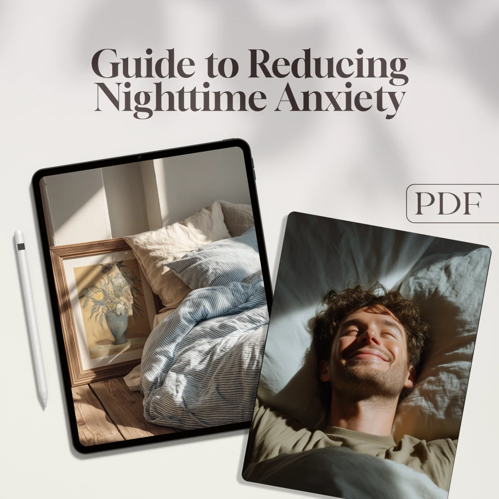 This guide is ideal for anyone who frequently feels anxious at night, lies awake worrying, or wants to learn how to reduce anxiety at night in a natural, manageable way. If you’re tired of staring at the ceiling in the dark, this is for you.
