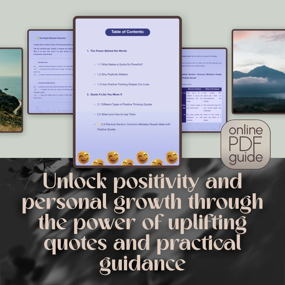 Unlike other digital resources that simply list positive thinking quotes, Bright Words, Brighter Mind dives into the meaning, timing, and personal impact of each quote. It’s interactive, reflective, and filled with real stories and practical tools that make positive thinking part of your real life—not just your screensaver.