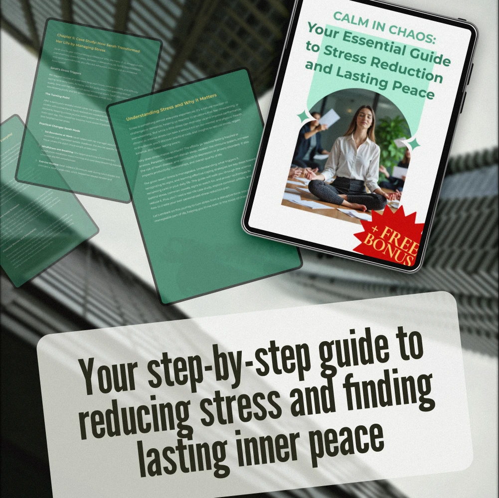 If you’re constantly overwhelmed, juggling too much, or struggling to catch your breath, Calm in Chaos: Your Essential Guide to Stress Reduction and Lasting Peace is here to help. This digital eBook is your supportive, practical companion in a noisy world—offering a clear path to relief, self-awareness, and sustainable peace. Whether you’re battling daily pressures or navigating a high-stress lifestyle, this guide helps you understand stress and take back control with simple, science-backed strategies. Designed for real life, this guide gently walks you through recognizing stress triggers, responding with mindfulness, and building habits that protect your inner calm.
