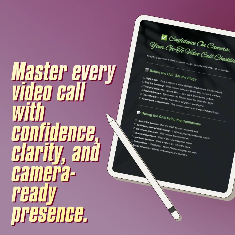 This checklist doesn’t just tell you what to do—it reminds you how to show up. Unlike generic video tips or lengthy guides, it’s punchy, memorable, and designed to become part of your daily routine. It’s the digital confidence coach you didn’t know you needed.