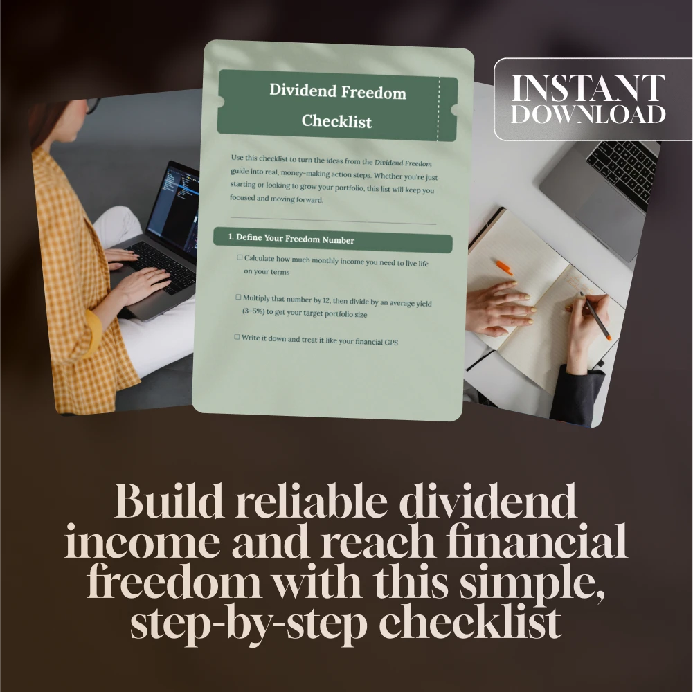 Unlike generic investing guides, the Dividend Freedom Checklist is laser-focused on dividend income, designed to take you from confused to confident. It’s structured, realistic, and geared toward helping you build an income-producing portfolio—without overwhelm.