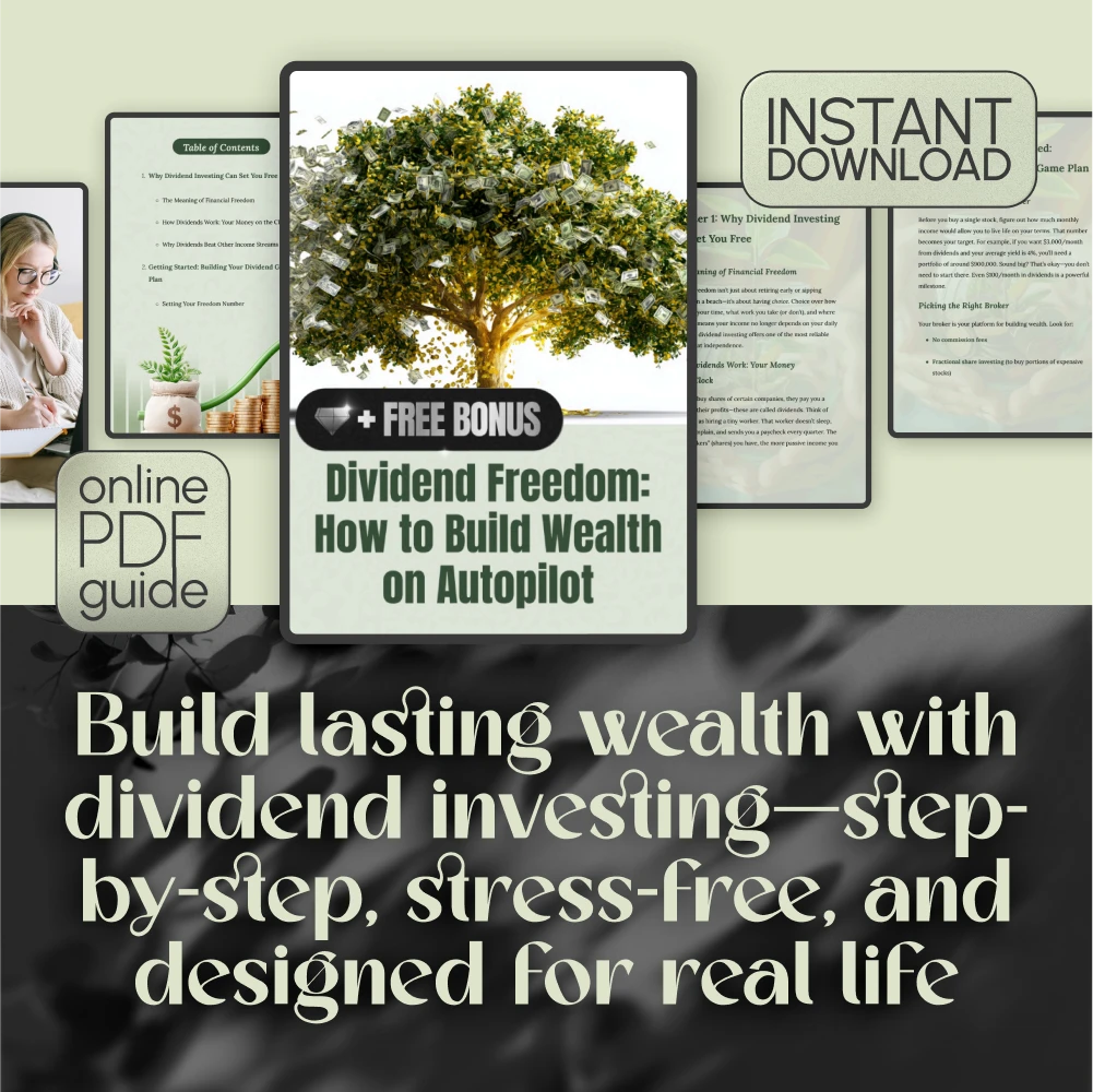 Start building your wealth the smart, sustainable way. Download Dividend Freedom: How to Build Wealth on Autopilot now and begin your journey to financial freedom through dividend investing—one payout at a time.
