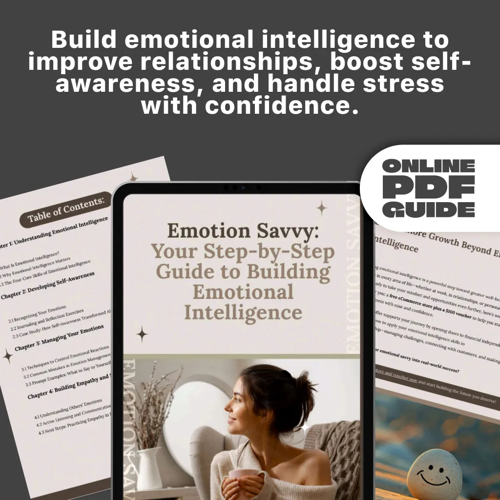 Ready to take control of your emotions, build stronger relationships, and thrive in every area of your life? Emotion Savvy: Your Step-by-Step Guide to Building Emotional Intelligence is your go-to digital resource for developing emotional awareness, self-control, empathy, and communication skills—all in one beautifully designed guide. Whether you’re looking to level up professionally, improve your personal relationships, or simply understand yourself better, this comprehensive eBook gives you the practical tools and insight to do just that.
