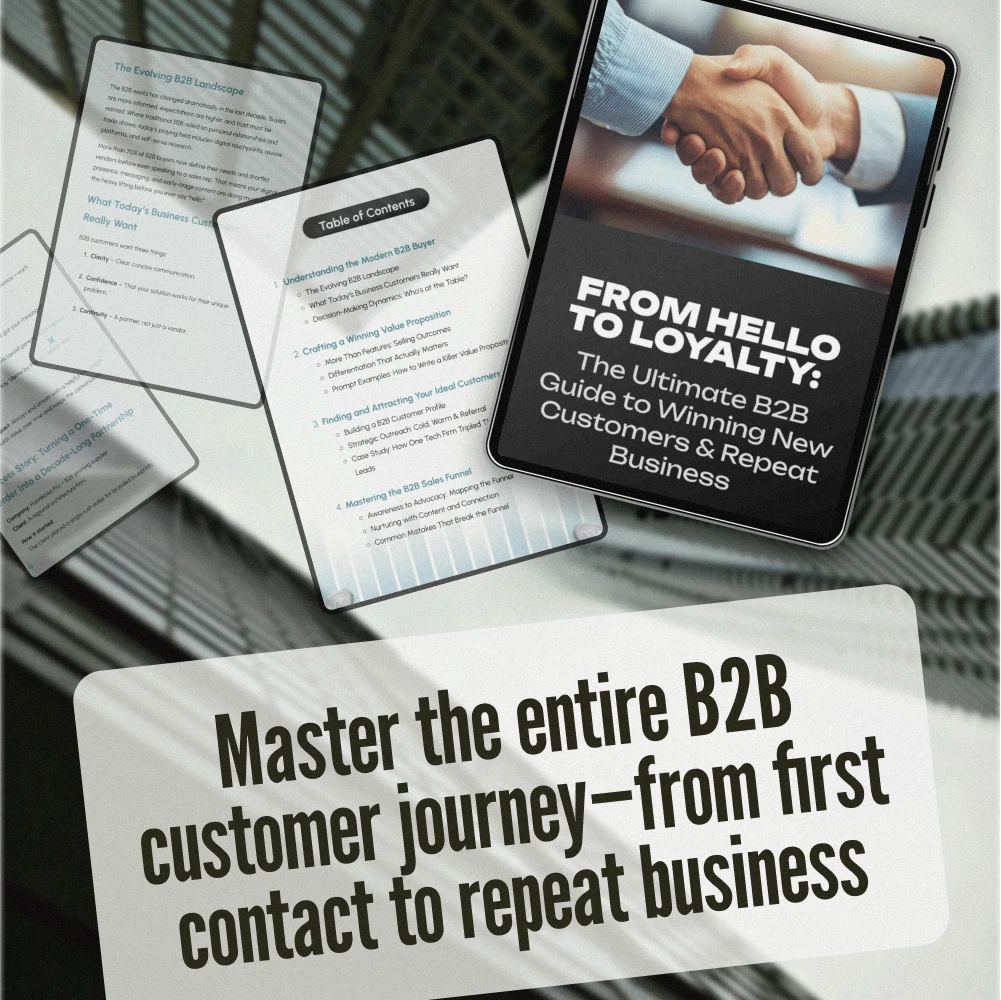 Struggling to turn prospects into paying clients—or repeat ones? From Hello to Loyalty: The Ultimate B2B Guide to Winning New Customers & Repeat Business is your all-in-one playbook for mastering every stage of the B2B customer journey. This powerful digital eBook is more than just theory—it’s packed with actionable strategies, expert insights, and proven techniques that help you connect, convert, and keep your ideal business customers.