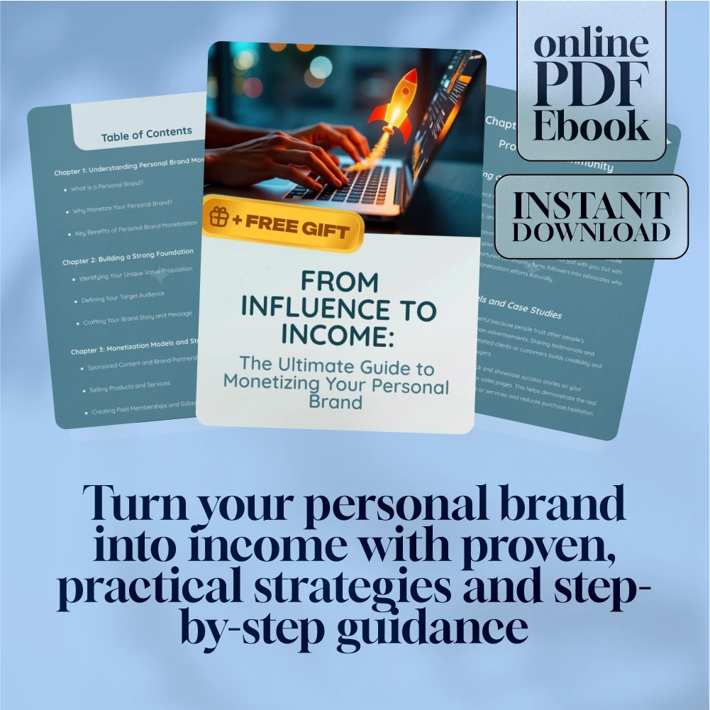Don’t let your brand’s value go untapped. Download From Influence to Income: The Ultimate Guide to Monetizing Your Personal Brand today and take the first step toward turning your influence into income. Your brand is more than your content—it’s your business.