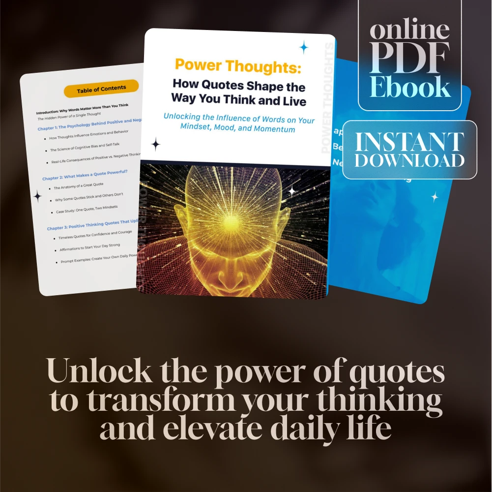 Unlike other quote compilations, this eBook goes beyond inspiration—it teaches you the psychology behind why quotes matter. With real-world examples, interactive prompts, and practical exercises, Power Thoughts is a powerful self-help companion that’s equal parts motivational and actionable.