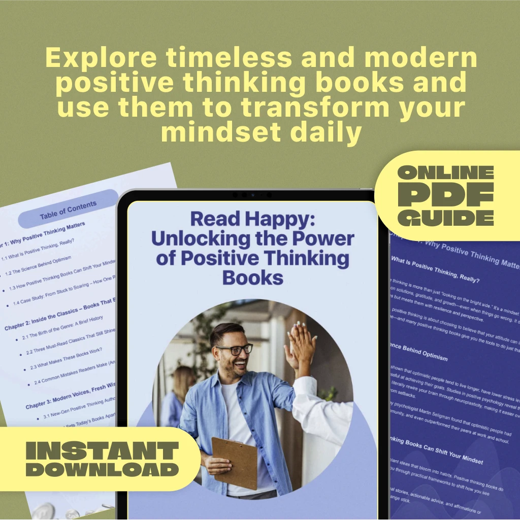 If you’ve ever felt stuck, overwhelmed, or in need of a mindset makeover, Read Happy: Unlocking the Power of Positive Thinking Books is your new go-to guide. This digital download is more than a reading list—it’s your roadmap to emotional empowerment and personal transformation through the world of positive thinking books. Whether you’re new to the genre or a lifelong self-help enthusiast, this easy-to-follow guide helps you discover which books can truly shift your perspective—and how to use them in real life.