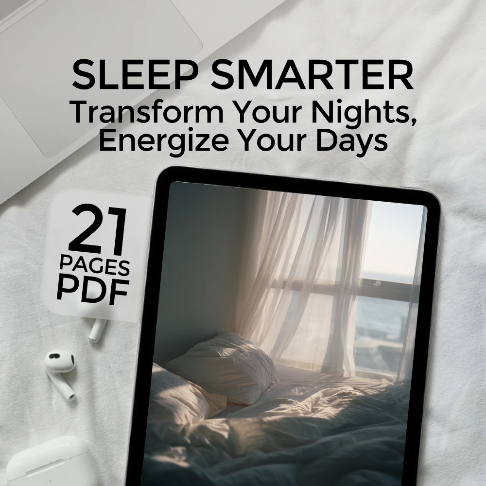 Struggling to fall asleep? Waking up tired? You’re not alone—and you don’t have to stay stuck in the cycle of restless nights and drained mornings. Sleep Smarter: Transform Your Nights, Energize Your Days is your ultimate digital guide to improve your sleep habits and finally get the restorative rest your body and mind need. Whether you’re a night owl, a chronic overthinker, or simply unsure what’s sabotaging your sleep, this downloadable eBook walks you through every step toward a healthier, more energized life—starting tonight.
