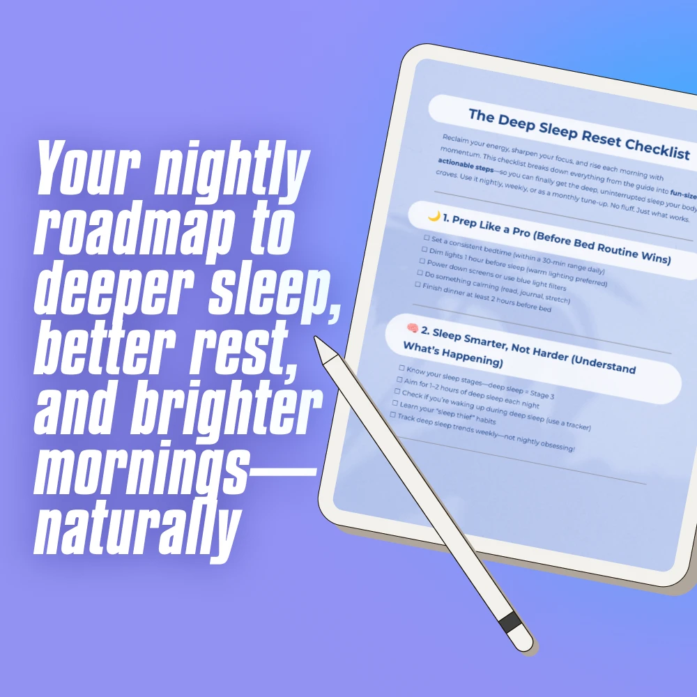 It’s time to stop guessing and start sleeping better. The Deep Sleep Reset Checklist makes it easy to build habits that actually improve deep sleep and help you feel energized, focused, and well-rested every morning. Download your copy now and start your deep sleep improvement journey tonight!