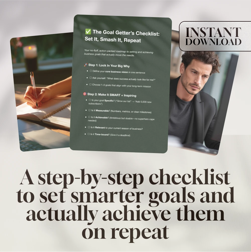 Don’t just set goals—smash them. Grab your copy of The Goal Getter’s Checklist: Set It, Smash It, Repeat today and finally learn how to set business goals and achieve them with confidence. Your future self will thank you.