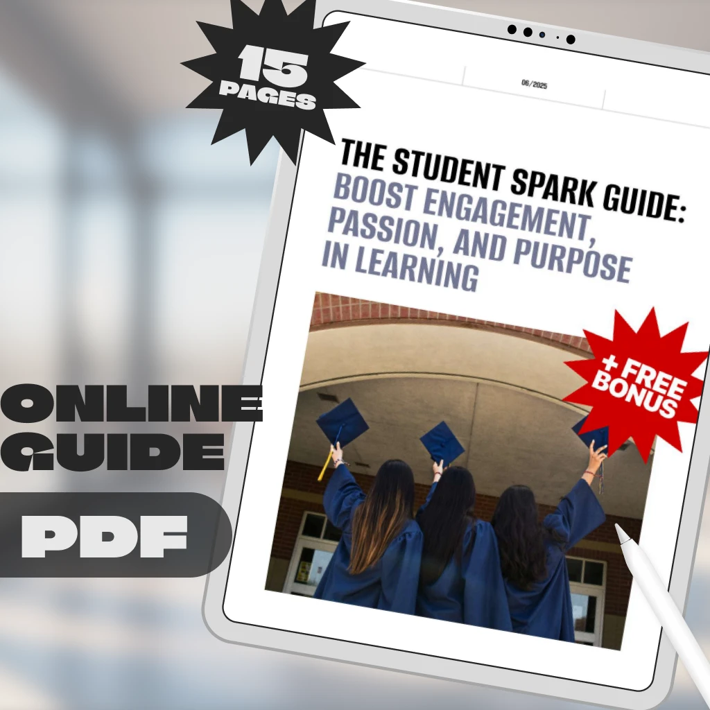 Don’t let another semester go by without the tools to truly connect with your students. Download The Student Spark Guide: Boost Engagement, Passion, and Purpose in Learning today and start transforming disengagement into drive. Your students—and your future self—will thank you.