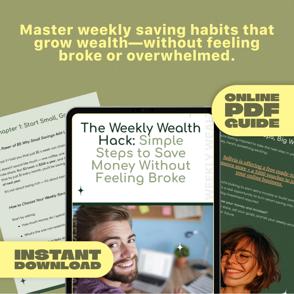 Download “The Weekly Wealth Hack: Simple Steps to Save Money Without Feeling Broke” now and discover the best way to save money weekly. Start small, stay consistent, and watch your savings grow—without ever feeling like you’re missing out.