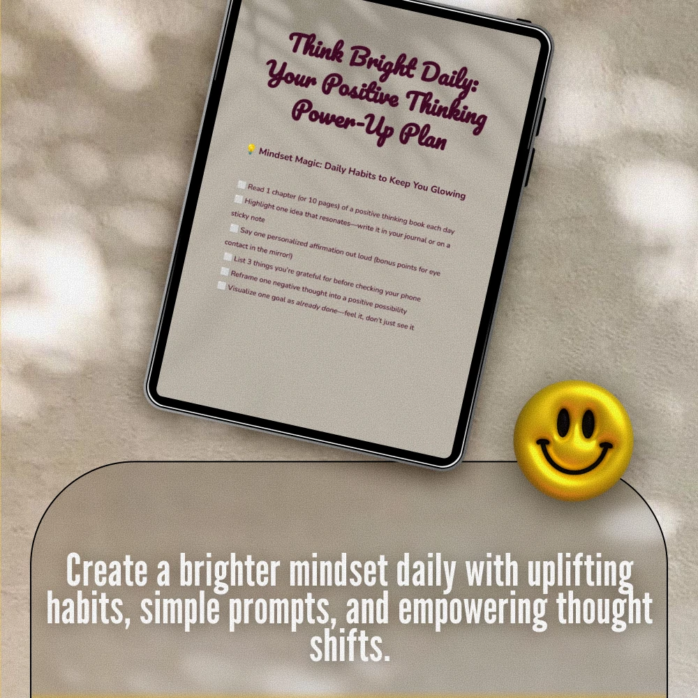 Download Think Bright Daily: Your Positive Thinking Power-Up Plan now and start your transformation one intentional habit at a time. Build confidence, create clarity, and shine from the inside out. Positivity is your superpower—this checklist just makes it easier to use it daily.