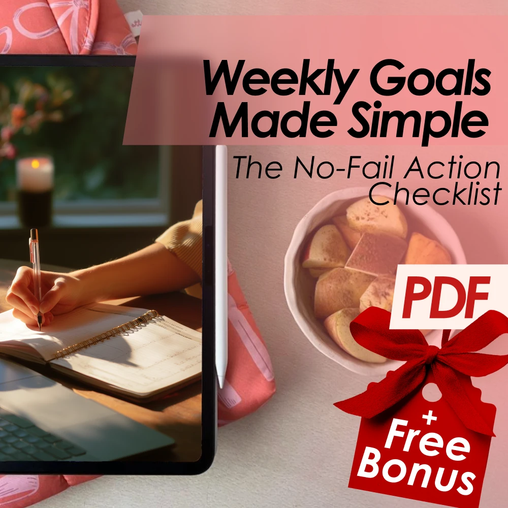If you’re tired of setting vague intentions and watching the week pass you by, it’s time to take action. Weekly Goals Made Simple: The No-Fail Action Checklist is your simple, no-fail formula for setting and crushing goals — without the burnout. Learn exactly how to set goals for the week that actually stick, and finally feel accomplished every single Friday.