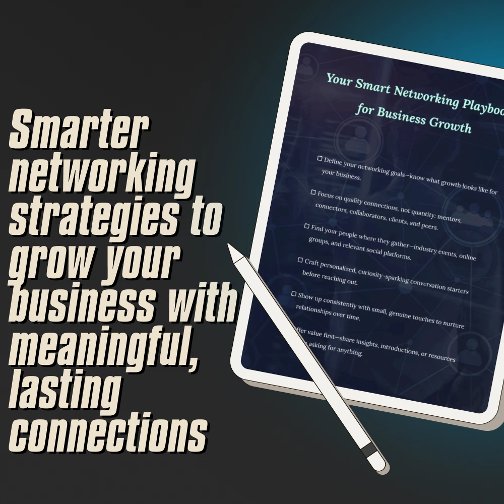 Ready to grow your business by building authentic, high-impact connections? Your Smart Networking Playbook for Business Growth is your go-to digital checklist packed with actionable networking strategies for business expansion. Whether you’re an entrepreneur, freelancer, or small business owner, this downloadable guide gives you a clear, step-by-step framework to help you create powerful relationships that fuel long-term success. Ditch outdated tactics and start networking with intention, purpose, and results.